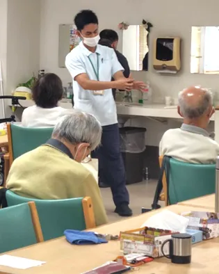 基本的には利用者さんが日常生活を送るうえで必要なケアをしますが、仕事の内容はシフトや担当によって違います。例えば利用者さんの爪切りのようなことも看護職員が行っています。ベトナムでは家族がすることなので、最初は驚きました。